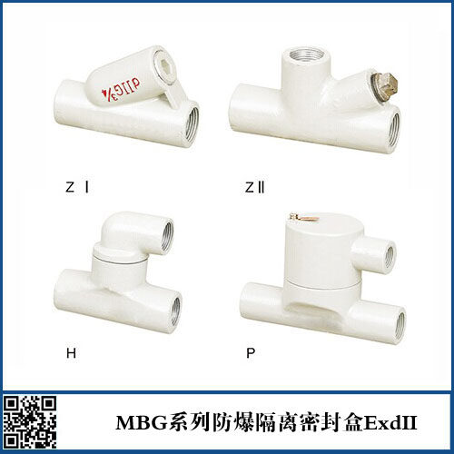 MBG防爆隔离密封管接头采用优质铝合金材质,表面喷塑。根据功能可分为L立式、H横式、P排水式等三种。